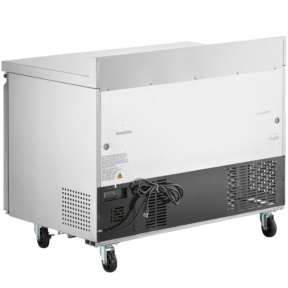 With a spacious stainless steel worktop surface for slicing, dicing, assembling, mixing, and other food prep tasks, the unit features a 3 1/2" backsplash for wall protection. The backsplash also prevents ingredients and supplies from falling behind the unit as you work.